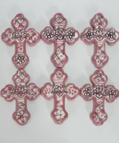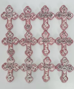 CRUZ 9 CM FONDO BLANCO DECORADO FLORES ROSA NO INCLUYE PERSONALIZADO