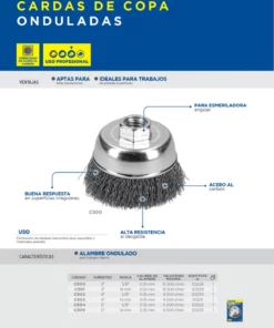 Carda copa trenzada alambre delgado 5″ x 0.35 mm con rosca M14 SURTEK