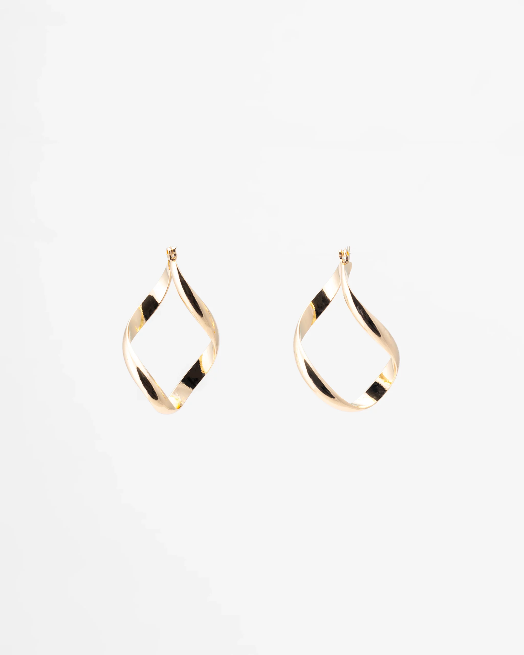 Aretes en tono dorado con un diseño de aro retorcido que resalta por su estilo geométrico y moderno.