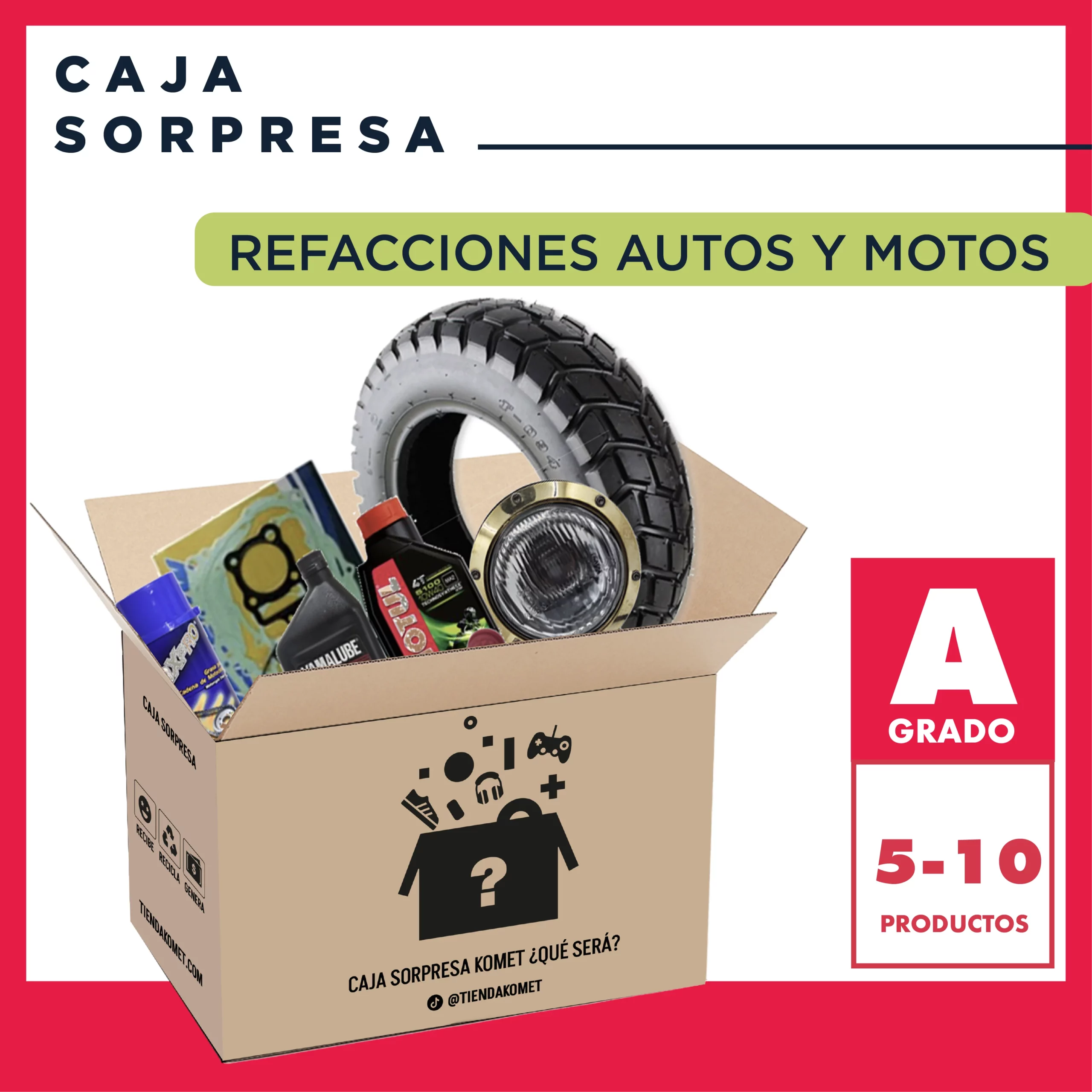 Te enviamos Entre 5 y 10 productos de Liquidaciones Grado A de refacciones para automoviles y motos.Puedes estar seguro que recuperaras el valor de tu inversión ya que los productos se eligen de acuerdo a su valor ¿A qué le llamamos Liquidaciones Grado A? Son productos que fueron liquidados por vendedores de Marketplaces y Retailers debido a: