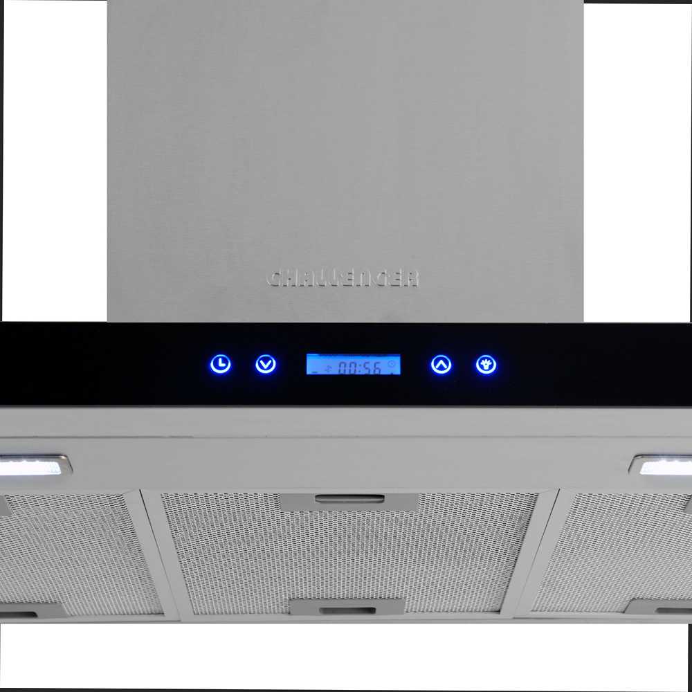 Control digital frontal tipo soft touch, con pantalla blue LCD y temporizador, que permite seleccionar las diferentes velocidades de extracción y la iluminación de manera independiente