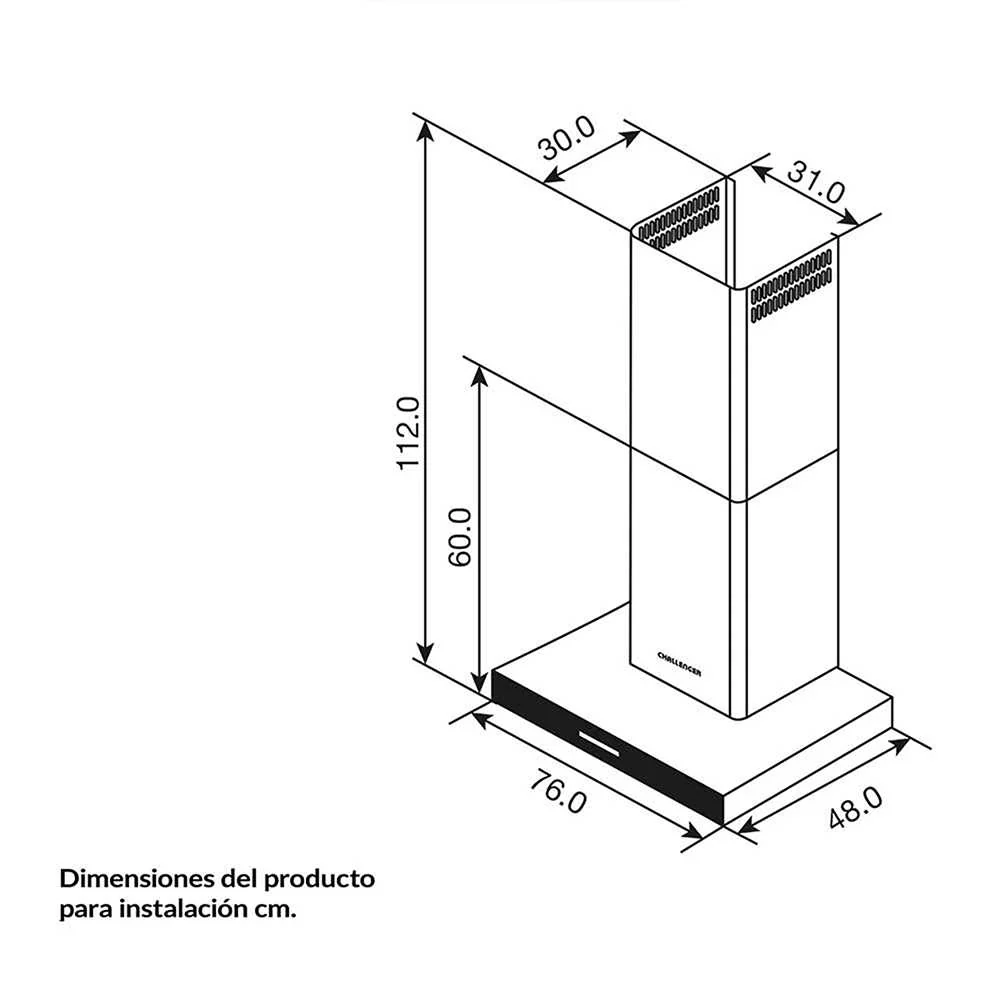 Campana con frente en vidrio templado y cuerpo en acero inoxidable