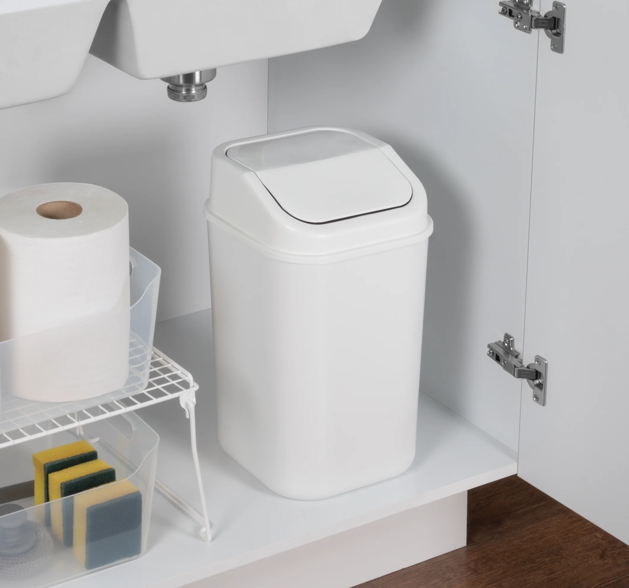 Cesto de basura de 14 litros con material de plástico diseñado en una medida de 22 x 22 x 40 cm. Ideal para organizar.