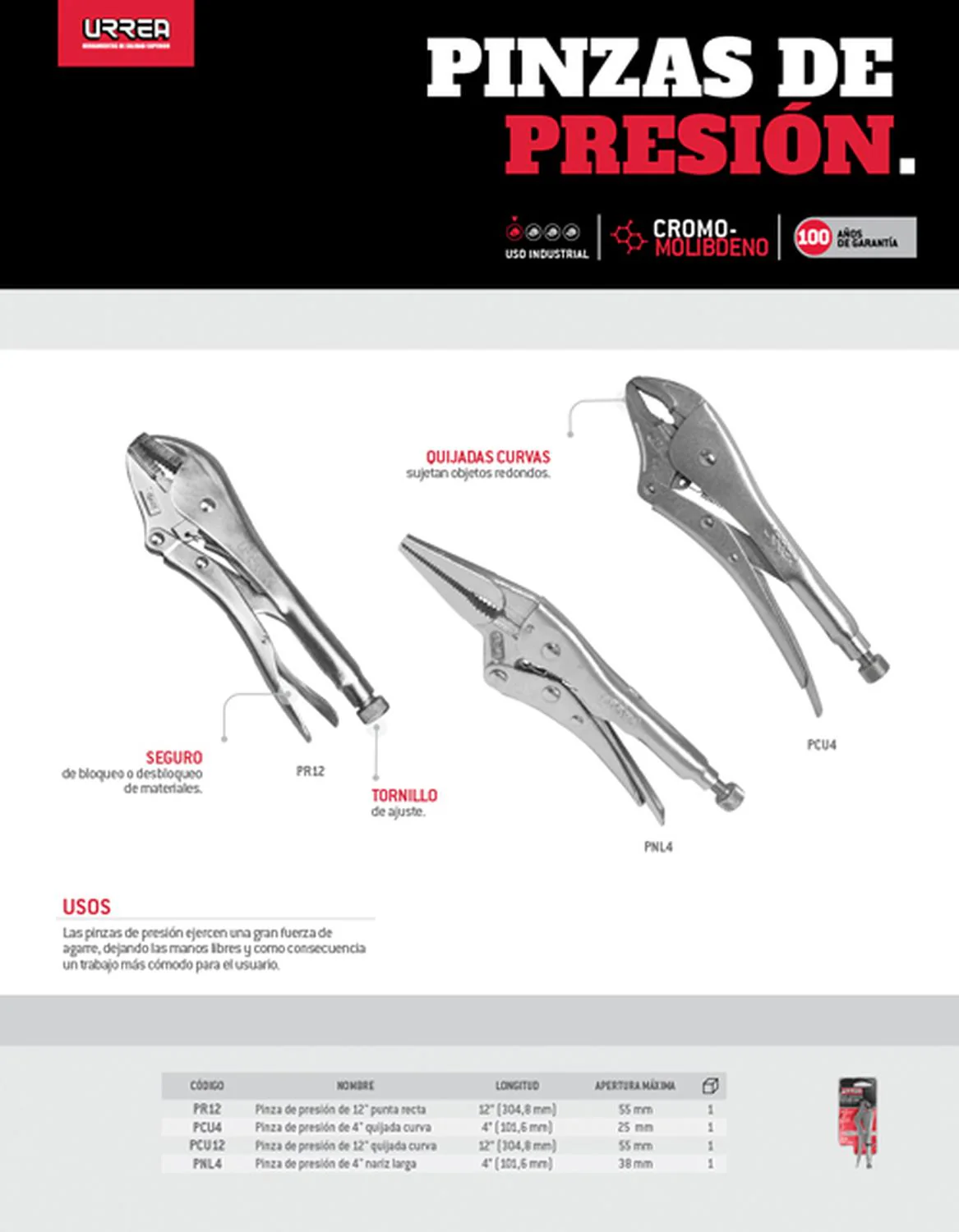 -Sujeta formas planas, redondas y objetos , voluminosos; ideal para fontanería, plomería y talleres de mantenimiento.