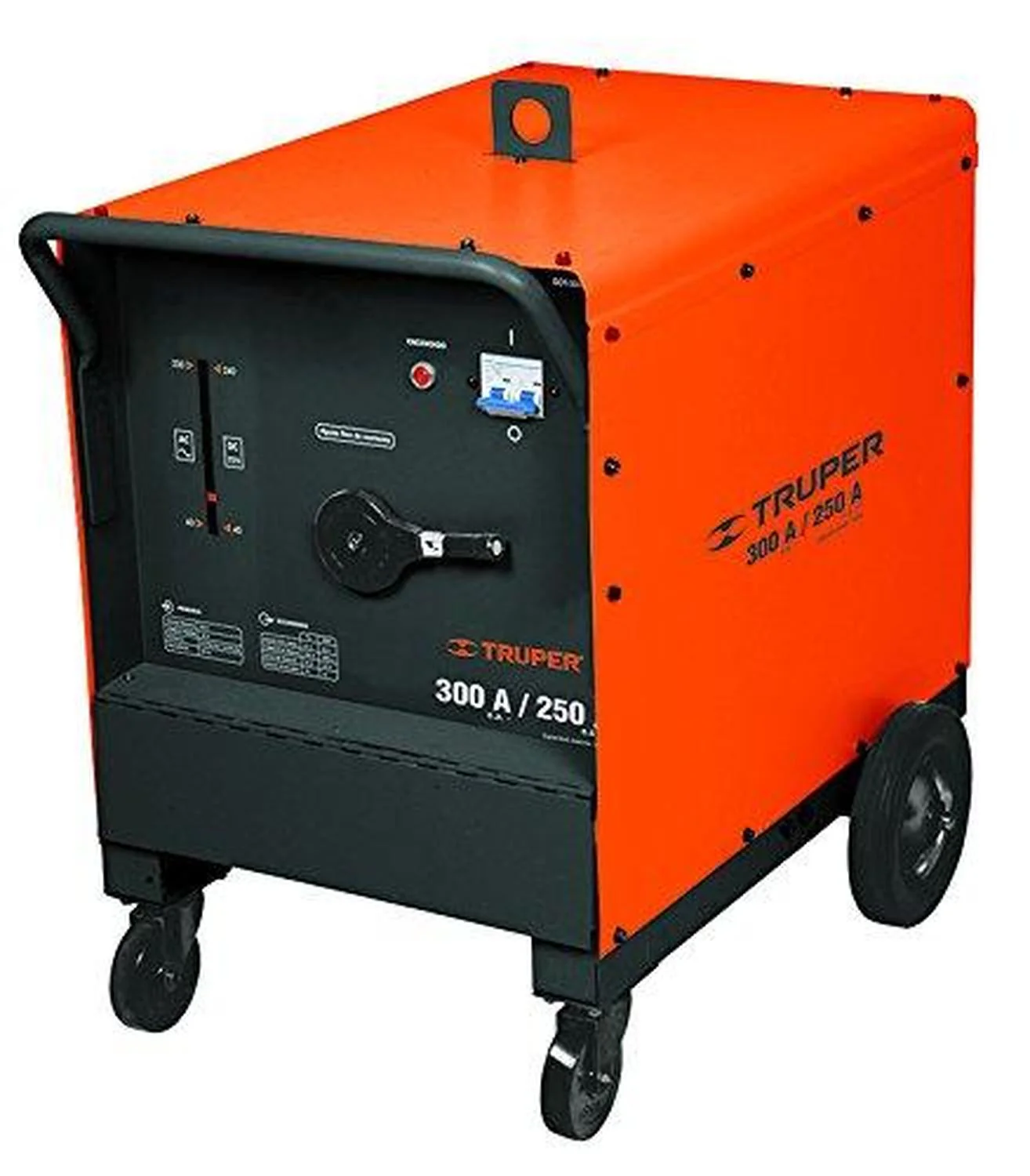 * Manivela abatible de ajuste fino de corriente que permite cambiar rangos de amperaje con mayor facilidad