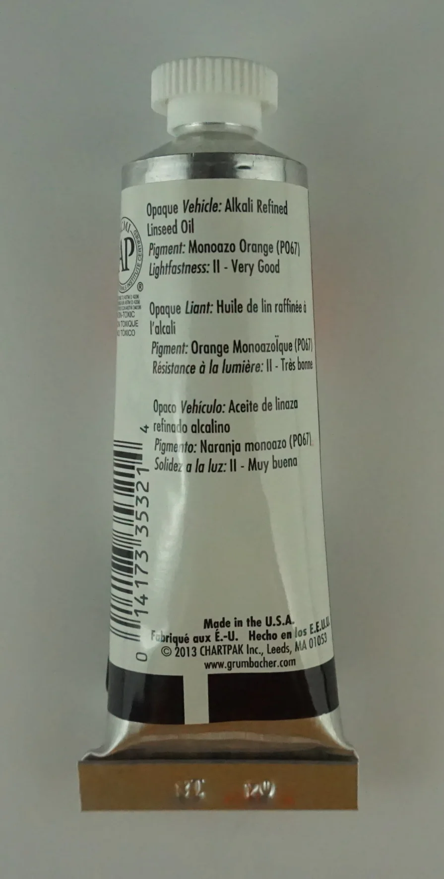 Tubo De Óleo Grumbacher 37ml P142G Naranja Monoazo